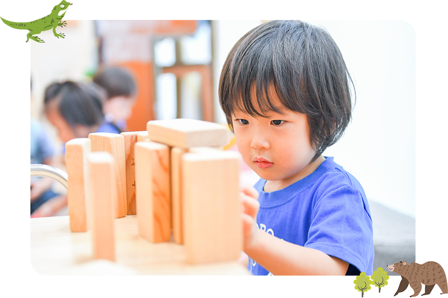 個々の発育状態や発達目標を念頭に置きながら、子どもがワクワクする環境を設定します。