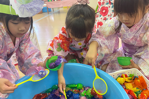 縁日のお店の商品も自分たちで作るよ☆ 毎年子どもたちに大人気の行事です!