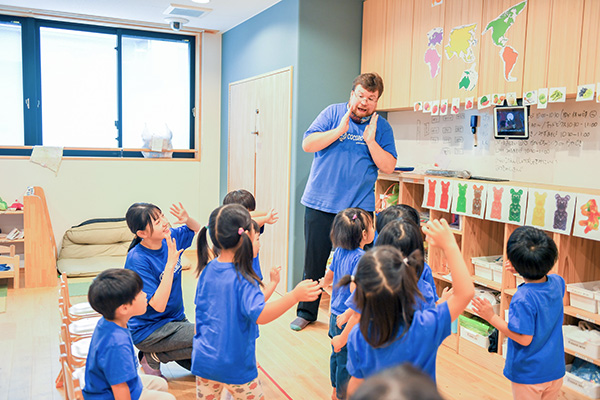 ネイティブイングリッシュティーチャーが主体となって、英語活動を行います。年齢や子どもたちの日々の興味関心にあわせた、日常とつながりのある英語体験なので、子どもたちも英語や異文化に触れることをのびのびと楽しんでいます♪